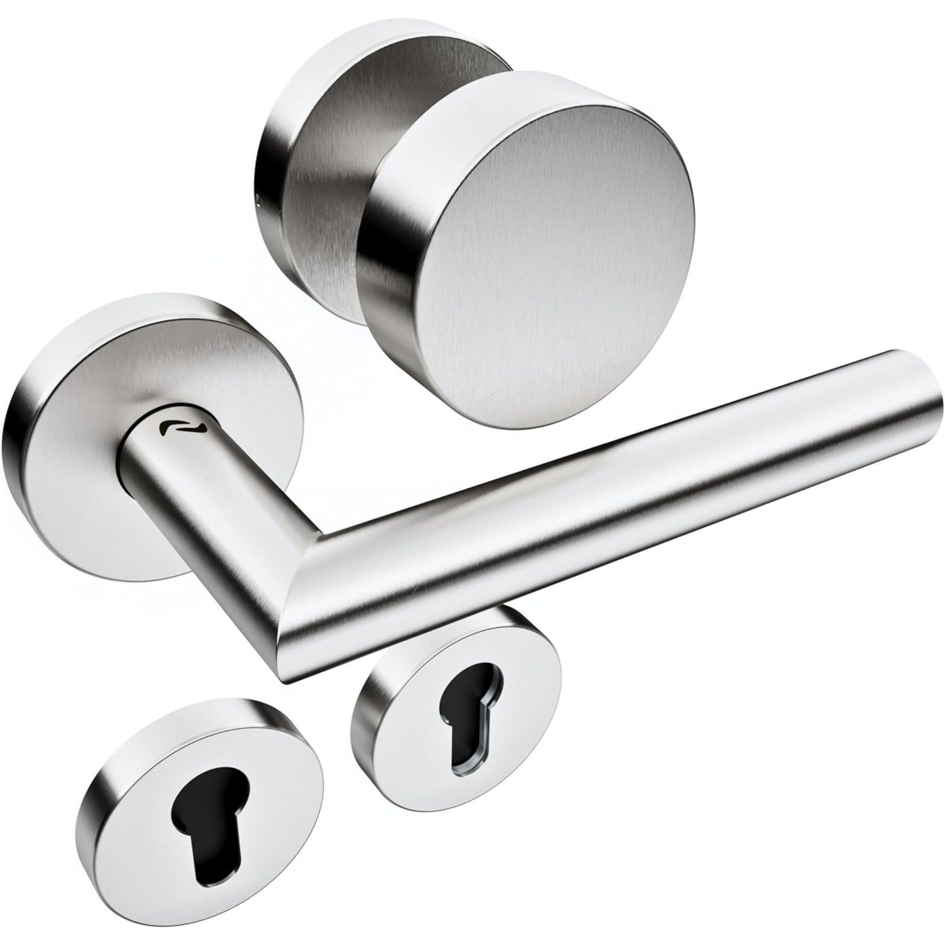 - Lieferumfang: 1× Türgriff, 1× Türknopf, 2× PZ-Rosetten, komplettes Montagematerial. (Hinweis: Schließzylinder und Einsteckschloss sind separat erhältlich).