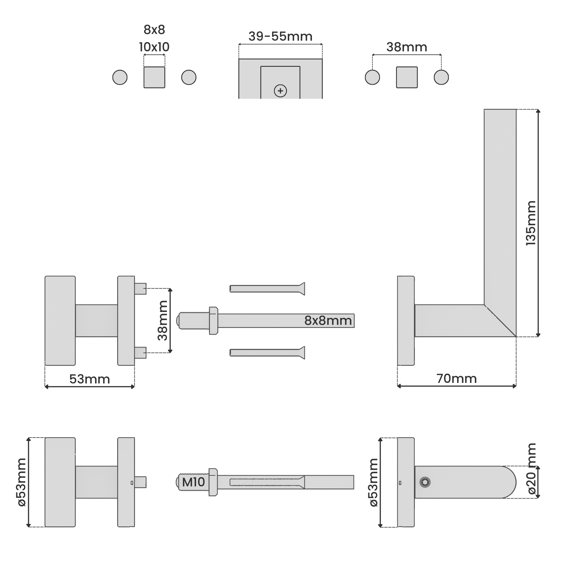 8 x 8mm mit M10 Gewinde