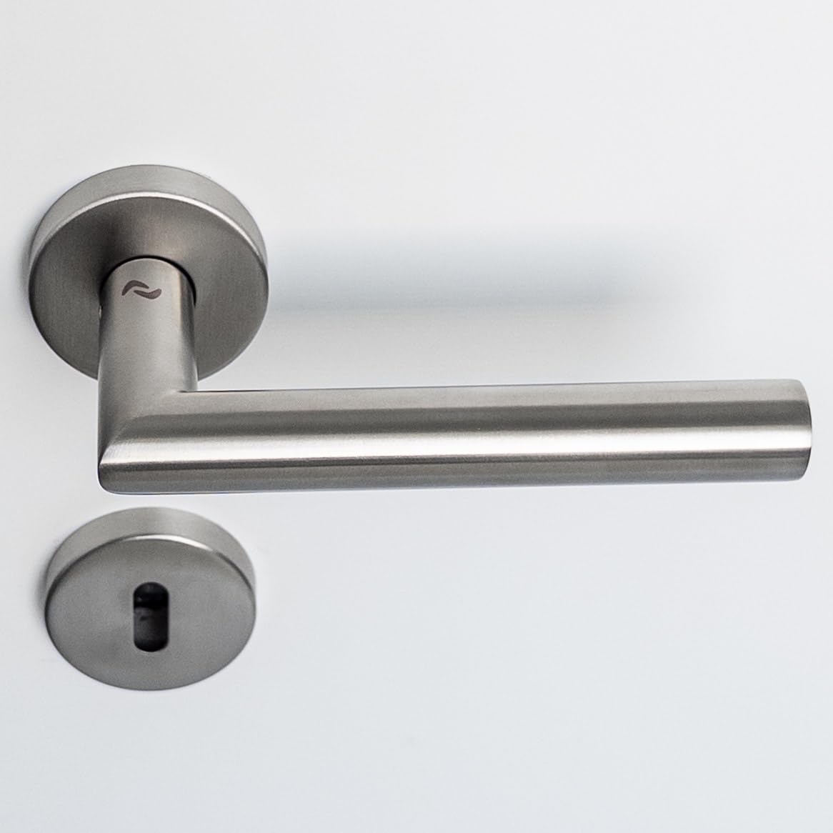 - Klassisches Design: Ein 20mm Rohr in L-Form, montiert auf einer runden Rosette, bietet ein universelles Aussehen, das zu jedem Interieur passt.